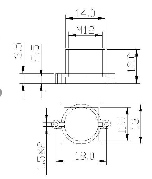 • Plastic M12 board lens mount, with 18mm hole spacing and 12mm height, Lens mount is centered on the holder.