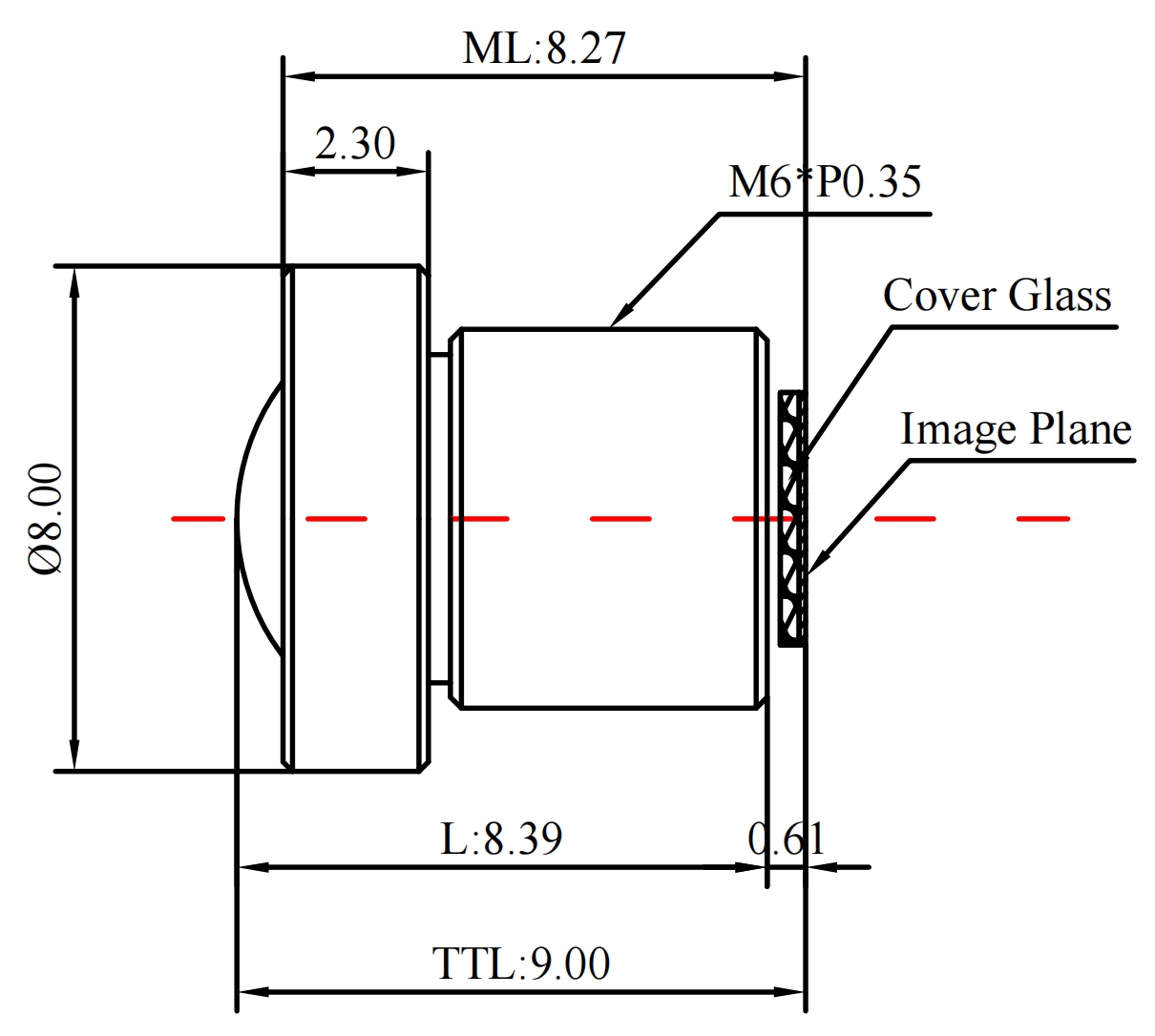 8.3mm 1/3.6″ F4.0 8mp M6 / M8 Mount miniature 4k low distortion board lens for medical biometrics industrial scanning – ACHF08340NDM6 ACHF08340NDM8
